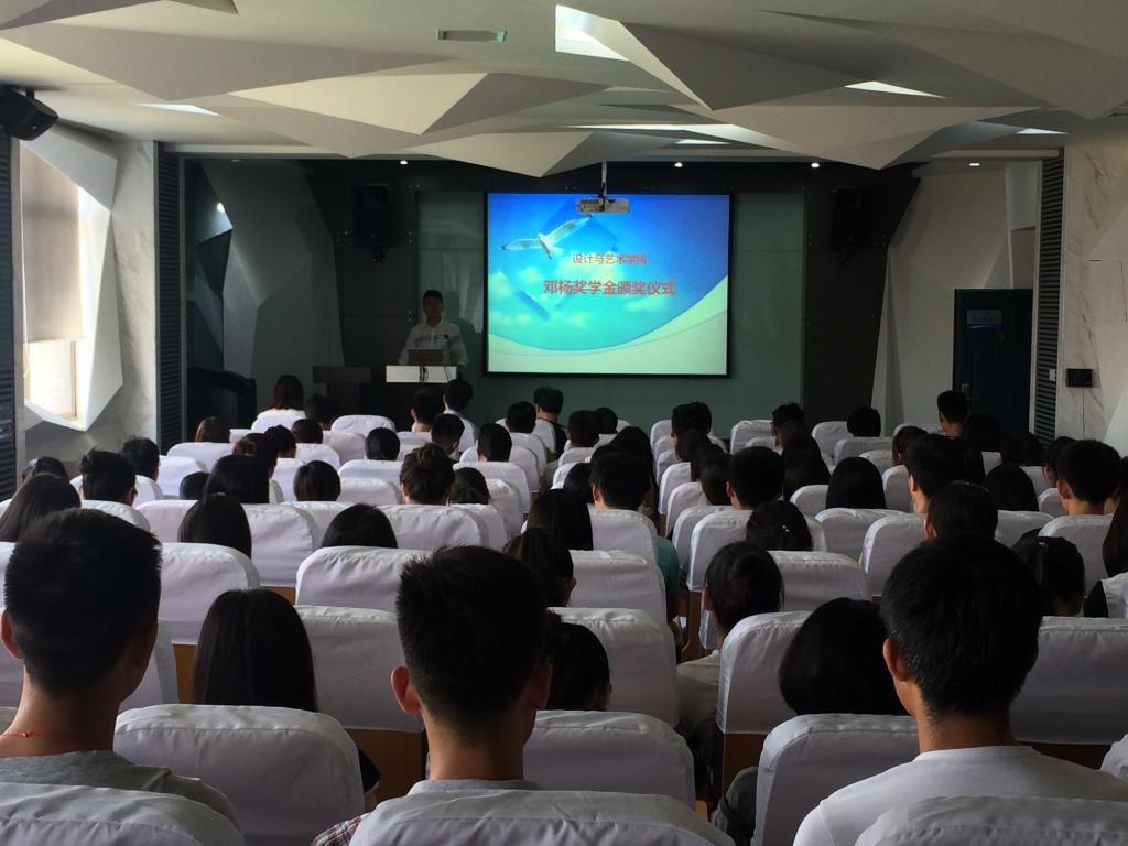 我校首個由在校學生設立的個人獎學金“鄧楊獎學金”6月9日上午在設計與藝術學院學術報告廳舉行頒獎儀式。2名設藝學院2012級學生從院黨委書記陳滿儒及獎金設立人鄧楊手中接過頒獎證書及獎金,讓她們在繁忙的學業(yè)中感覺到了畢業(yè)學長的關心和幫助。
