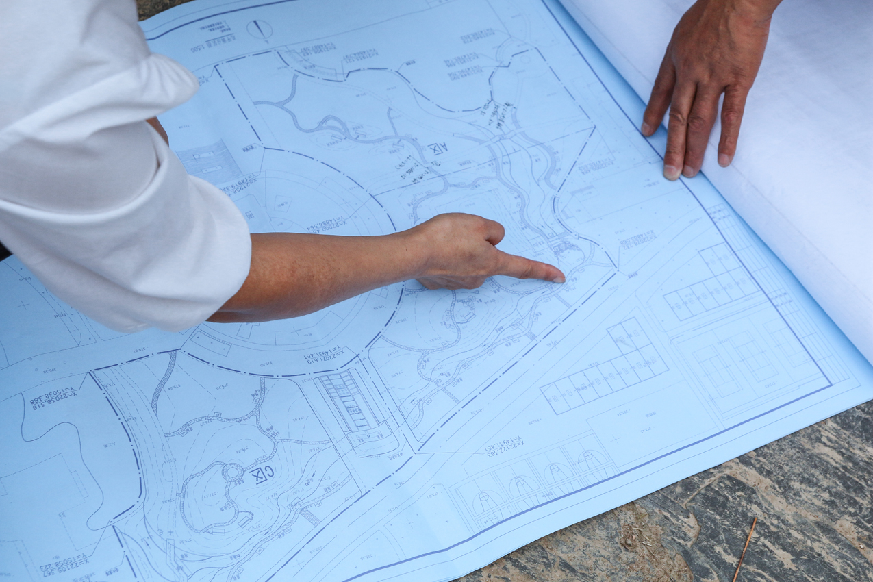 二是圖書館北側(cè)和北環(huán)道的南側(cè)埋設(shè)有給水、熱力、電力、消防、污水管道,設(shè)計(jì)時(shí)要避開這些管道,同時(shí)結(jié)合現(xiàn)有的地形條件,對(duì)湖面進(jìn)行了某些地方收縮、某些地方開放的調(diào)整,既要保護(hù)原有管道還要考慮湖南側(cè)山體的開挖量要少。