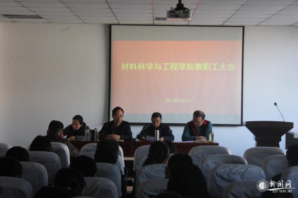 3月1日,材料學(xué)院召開新學(xué)期教職工大會,學(xué)院黨政領(lǐng)導(dǎo)班子、全體教職工參加大會,會議由分黨委書記陳福生主持。