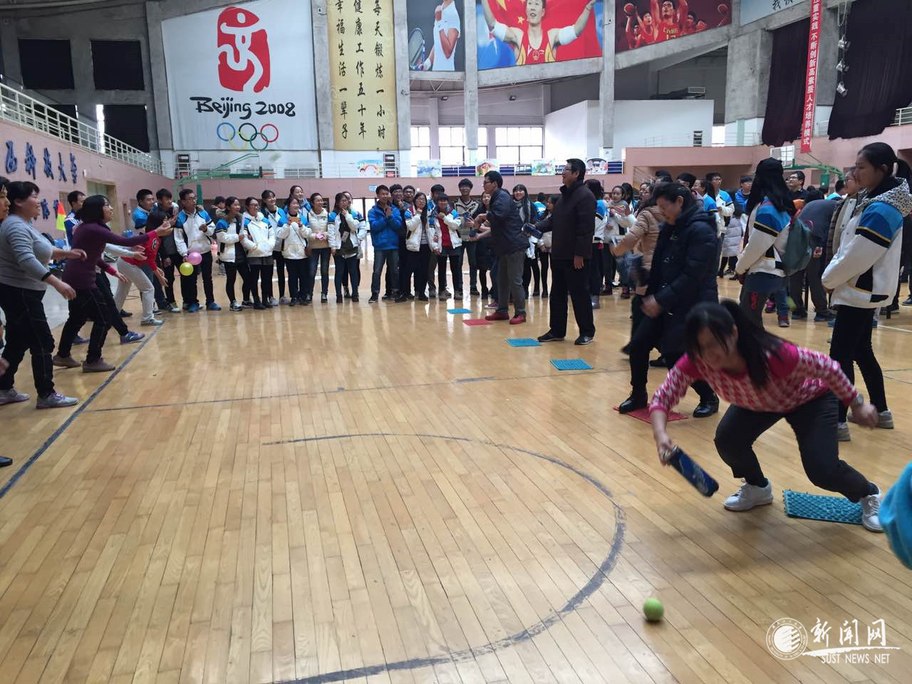 為進(jìn)一步豐富食品學(xué)院教職工文娛活動,緩解工作壓力,提高教職工參加體育鍛煉的積極性,增強(qiáng)體質(zhì),營造積極向上、和諧團(tuán)結(jié)的良好氛圍,食品學(xué)院工會于2016年12月29日在校文體館舉辦教職工趣味運(yùn)動會?;顒臃譃榀偪衿古仪颉扇巳悴葰馇?、默契接球、持球跑四個個人項(xiàng)目及折報(bào)紙、指壓板障礙賽、終極撕名牌大戰(zhàn)三個團(tuán)體項(xiàng)目。