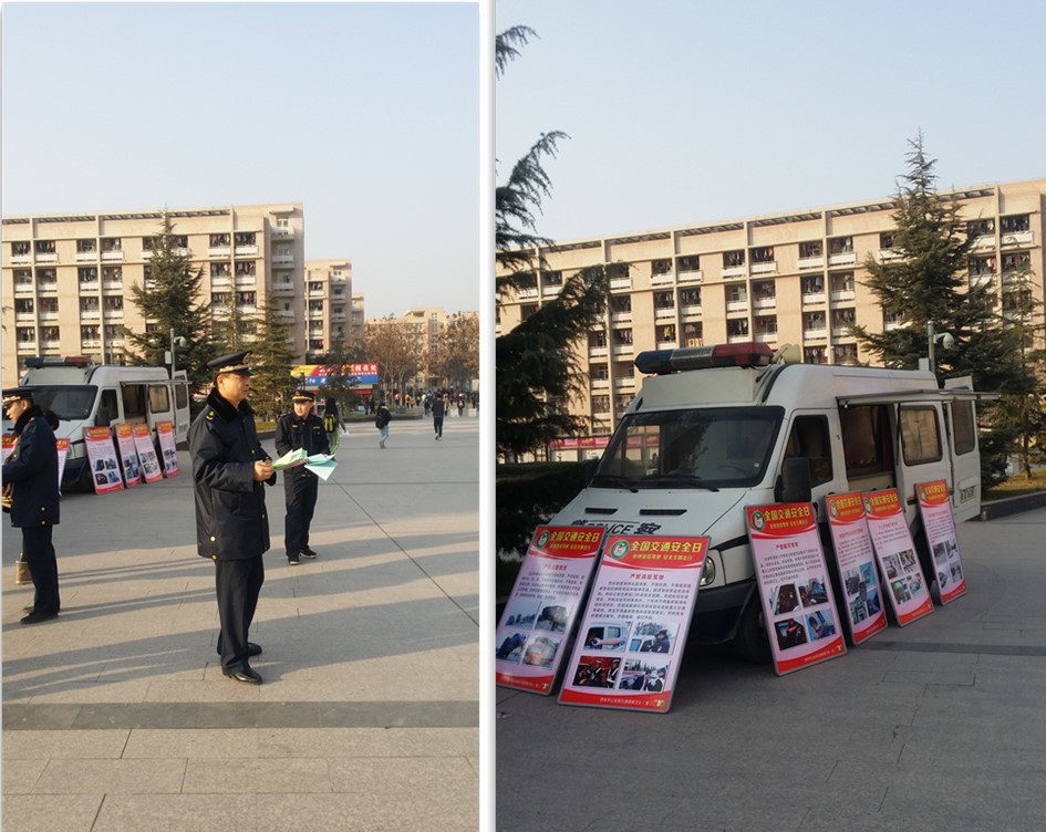 活動(dòng)采用展板、現(xiàn)場(chǎng)發(fā)放資料和視頻播放的方式宣傳交通安全的重要性。區(qū)交通局在《致廣大師生的一封信》中提醒廣大師生返鄉(xiāng)、探親、旅游途中不要乘坐非法營(yíng)運(yùn)的黑車(chē)和講解如何辨別黑車(chē)。未央交警大隊(duì)用交通宣傳車(chē)播放交通違法案例視頻,一個(gè)個(gè)令人唏噓的交通事故現(xiàn)場(chǎng),說(shuō)明所有的交通參與者都應(yīng)該遵章守法,敬畏生命。未央交警大隊(duì)還制作了20多塊展板,圖文并茂的宣傳了交通安全知識(shí),倡導(dǎo)遵章守規(guī)、文明出行。
