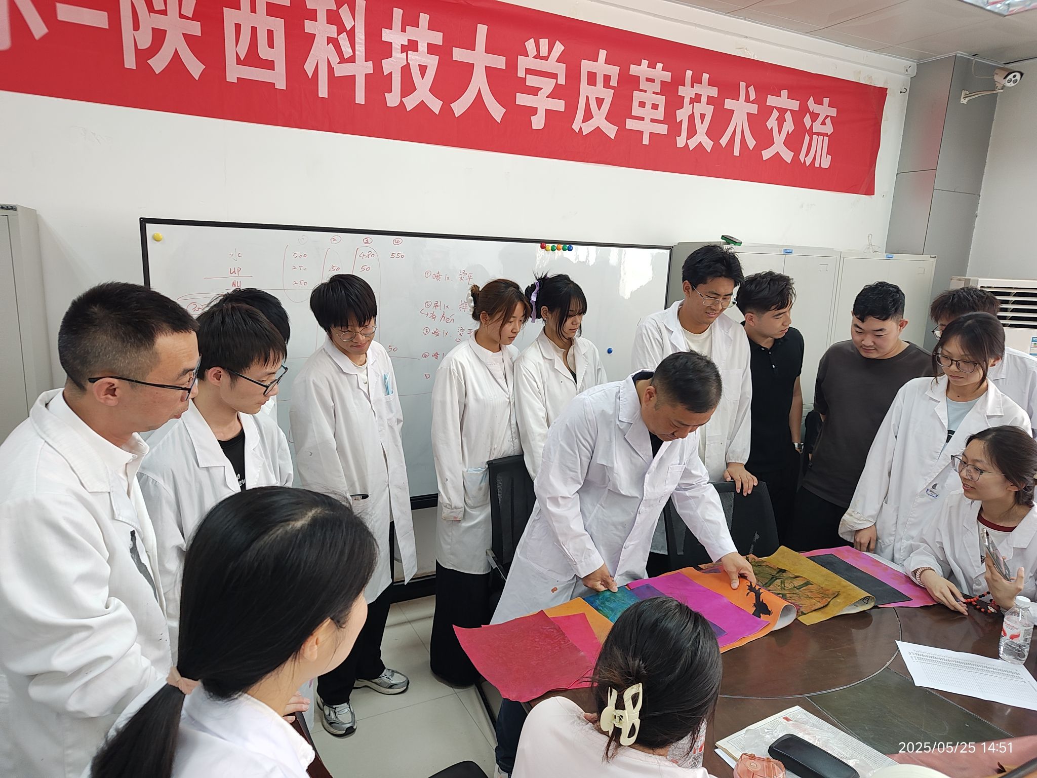 交流期間,夏敏、涂剛和費(fèi)必江給輕化工程專業(yè)(皮革)師生做了主題報(bào)告, 分別為斯塔爾公司介紹、皮革市場(chǎng)最新發(fā)展以及市場(chǎng)流行皮革產(chǎn)品涂飾方案。隨 后,在學(xué)院專業(yè)實(shí)驗(yàn)室,夏經(jīng)理、涂經(jīng)理、費(fèi)經(jīng)理手把手地指導(dǎo)學(xué)生完成扎染、 油蠟、納帕三種皮革涂飾效應(yīng)的制作。在整個(gè)實(shí)驗(yàn)過(guò)程中,學(xué)生積極思考、參與 度極高,把自己的奇思妙想融入實(shí)驗(yàn)中,深度體驗(yàn)并踐行了皮革涂飾“技術(shù)與藝 術(shù)融合”的理念。