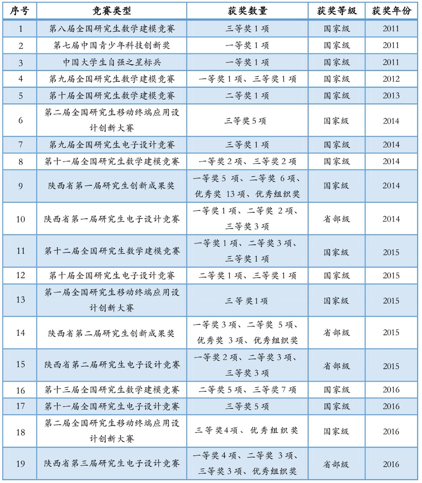 聚焦各類創(chuàng)新賽事,積極組織研究生參加教育部“研究生創(chuàng)新實踐系列活動”、陜西省研究生創(chuàng)新成果展等國家和地方學科競賽,近年來累計投入經(jīng)費240萬元,參加人數(shù)達到2100余人,先后斬獲國家級獎項45項,省部級獎項59項;其中在第一、二屆陜西省研究生創(chuàng)新成果展中獲一等獎8項,二等獎11項,優(yōu)秀獎16項,位列陜西省屬高校第一。