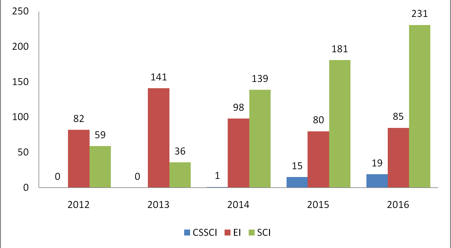 2012-2016年我校研究生高水平成果趨勢圖