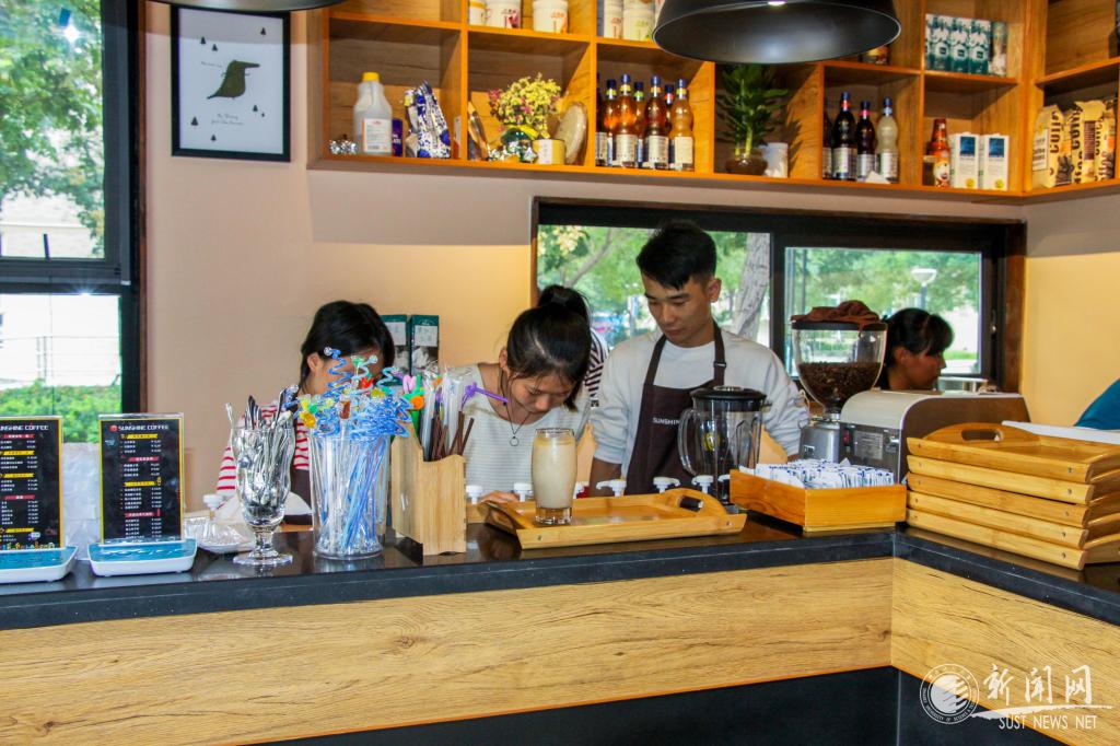 秋日暖洋洋的午后,當(dāng)你漫步在科大校園里,目光可及之處,有一座小木屋在叢林掩映之中顯得愈加精巧別致。屋前點(diǎn)綴著桌椅陽傘,到了晚間,屋子在夜色下燈火通明,散發(fā)出馨香迷人的咖啡味,這正是我校陽光助學(xué)中心新開的大學(xué)生創(chuàng)業(yè)就業(yè)實(shí)體——sunshine咖啡館。它是我校陽光助學(xué)中心繼陽光書苑、陽光SUN酒吧、陽光書報(bào)亭、陽光茶坊之后新建設(shè)的大學(xué)生勤工助學(xué)以及創(chuàng)業(yè)孵化基地,它為科大學(xué)子勤工助學(xué)、創(chuàng)業(yè)就業(yè)創(chuàng)造了新的條件。