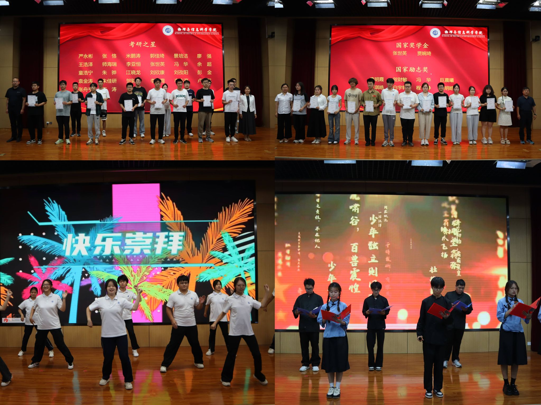 表彰大會(huì)以“青春逐夢(mèng)、榮耀同行”為主題,通過四個(gè)篇章,生動(dòng)展現(xiàn)了物理學(xué)子在青春賽道上奮勇拼搏的精彩畫卷。第一篇章“揚(yáng)帆起航——做敢想敢為的新青年”,表彰了在閱讀、文藝、體育等方面表現(xiàn)突出的同學(xué),“閱讀之星”“文藝之星”“體育之星”等榮譽(yù),詮釋了青春的無限可能。第二篇章“勤學(xué)善思——做只爭朝夕的新青年”,表彰了在班團(tuán)建設(shè)等方面表現(xiàn)突出的集體,“先進(jìn)團(tuán)支部”“優(yōu)秀班集體”“優(yōu)秀宿舍”等榮譽(yù),彰顯了團(tuán)隊(duì)協(xié)作的強(qiáng)大凝聚力;第三篇章“奮楫篤行——做追光逐電的新青年”,表彰了在學(xué)業(yè)和科技創(chuàng)新方面獲“國家獎(jiǎng)學(xué)金”“優(yōu)秀科創(chuàng)獎(jiǎng)”的同學(xué),他們是科研創(chuàng)新的排頭兵。第四篇章“長風(fēng)萬里——做志存高遠(yuǎn)的新青年”,表彰了畢業(yè)生在考研、就業(yè)和學(xué)生工作等方面取得的成績,“考研之星”“就業(yè)之星”“優(yōu)秀畢業(yè)生”“優(yōu)秀畢業(yè)生學(xué)生干部”等榮譽(yù),是對(duì)他們大學(xué)時(shí)光努力的最好肯定。