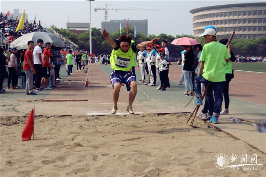 三級跳遠大學生男子組比賽期間,每位選手都奮力跳躍。有的選手表現(xiàn)的相當出色,讓在場觀看的同學禁不住歡呼和鼓掌;有的同學因為發(fā)力過猛而不幸拉傷肌肉導致不能繼續(xù)比賽,表示相當遺憾,但他們那種運動精神值得欽佩。最終,材料科學與工程學院榮獲第一。