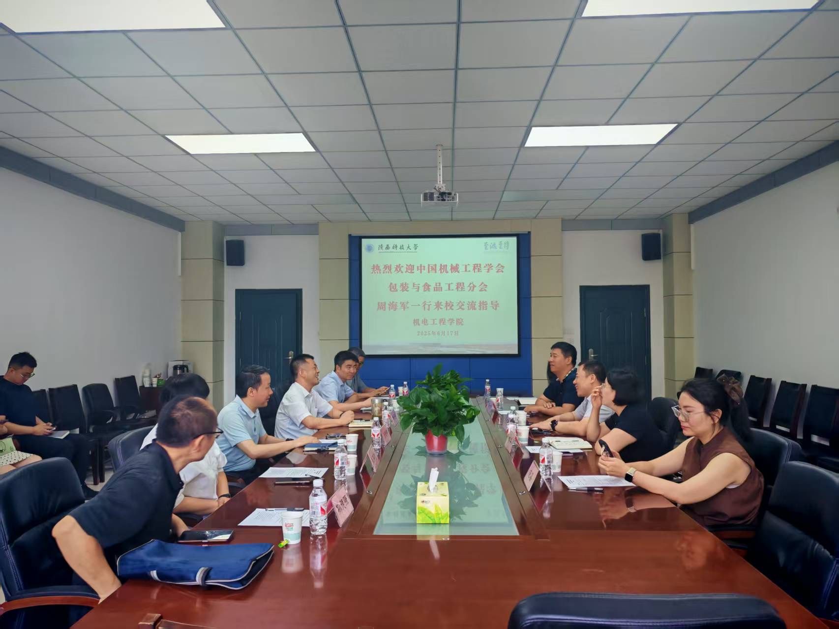 6月17日,中國機械工程學會包裝與食品工程分會主任委員周海軍、秘書長趙丹和中國包裝和食品機械有限公司副總經(jīng)理王世光一行來機電工程學院座談交流。此次交流會由學院副院長袁越錦主持,院長楊立軍、副院長何乃如,食品科學與工程學院莫海珍教授、輕工科學與工程學院孫德強教授等相關學院領導和教師參加了交流活動。