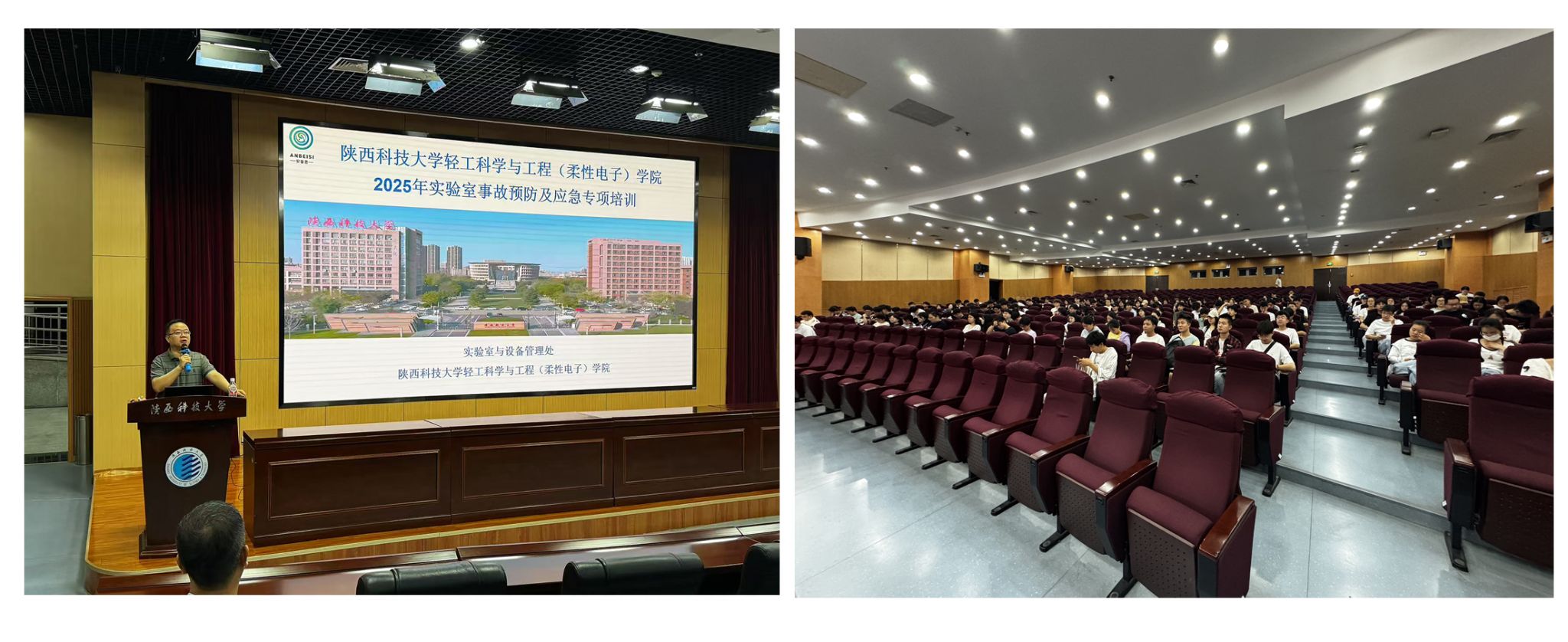 為貫徹落實(shí)教育部關(guān)于實(shí)驗(yàn)室安全管理的部署要求,進(jìn)一步提升師生安全防范意識(shí)與提高實(shí)驗(yàn)室安全應(yīng)急技能,2025年6月24日,輕工科學(xué)與工程學(xué)院聯(lián)合實(shí)驗(yàn)室與設(shè)備管理處召開2025年實(shí)驗(yàn)室事故預(yù)防及應(yīng)急專項(xiàng)培訓(xùn)會(huì)。會(huì)議結(jié)合2025年安全生產(chǎn)月"人人講安全、個(gè)個(gè)會(huì)應(yīng)急 ——查找身邊安全隱患"的活動(dòng)主題,邀請(qǐng)校外安全宣講專員劉濤老師開展專題講座與相關(guān)技能培訓(xùn),學(xué)院分管副院長(zhǎng)劉國(guó)棟、實(shí)驗(yàn)室管理中心主任楊保宏及師生代表共計(jì)300余人參加會(huì)議。