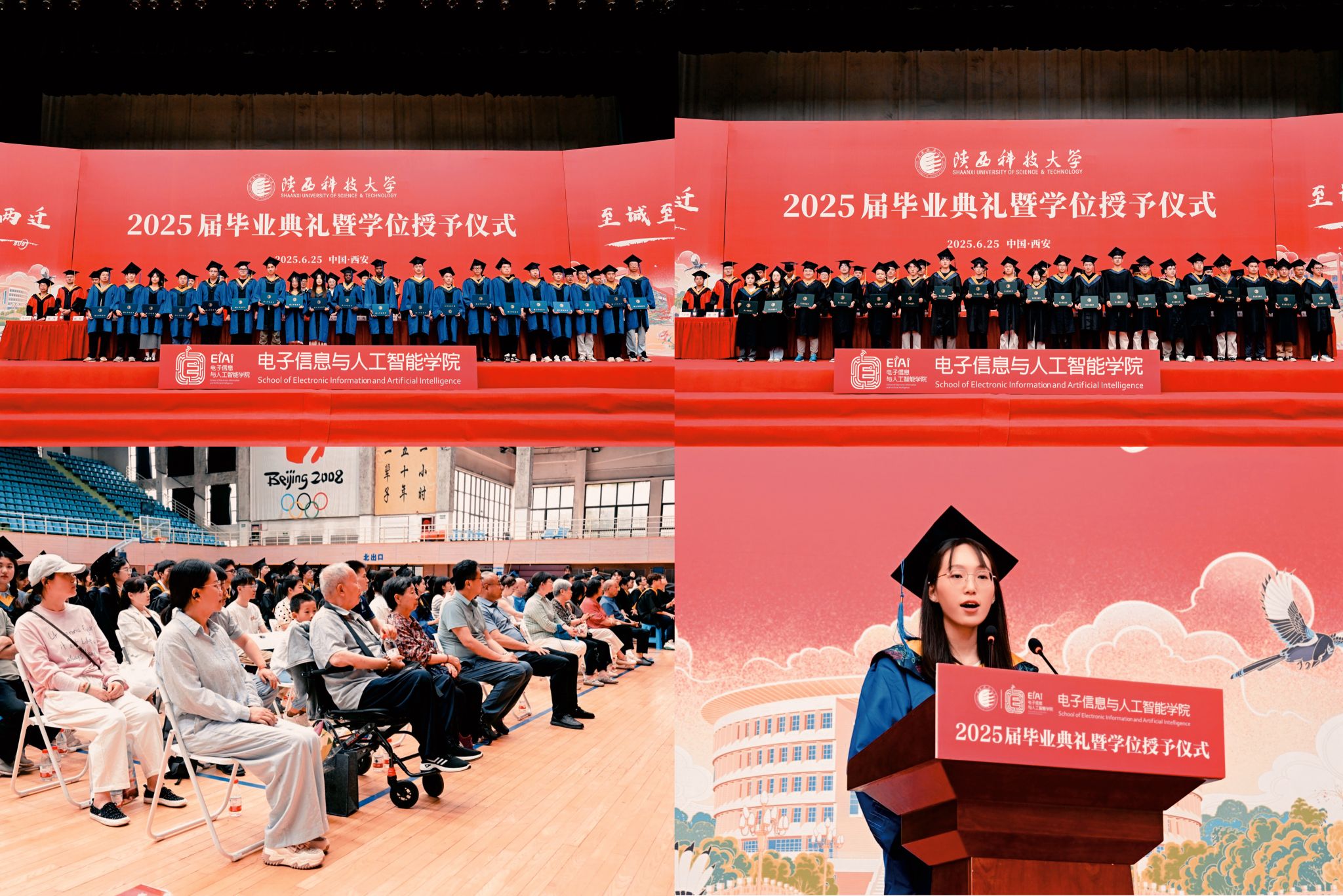 6月25日,電智學院2025屆畢業(yè)典禮于學校文體館舉行,典禮以“智青春”為主題,在師生共同見證下,院學術委員會成員為757名學子撥穗正冠。學院教師代表王曉發(fā)言,為全體2025屆畢業(yè)生送上飽含深情與期許的寄語,優(yōu)秀畢業(yè)生代表許葉彤發(fā)言暢談畢業(yè)感想,增強了全體畢業(yè)生的榮譽感與歸屬感,為他們深植“感恩”情懷。