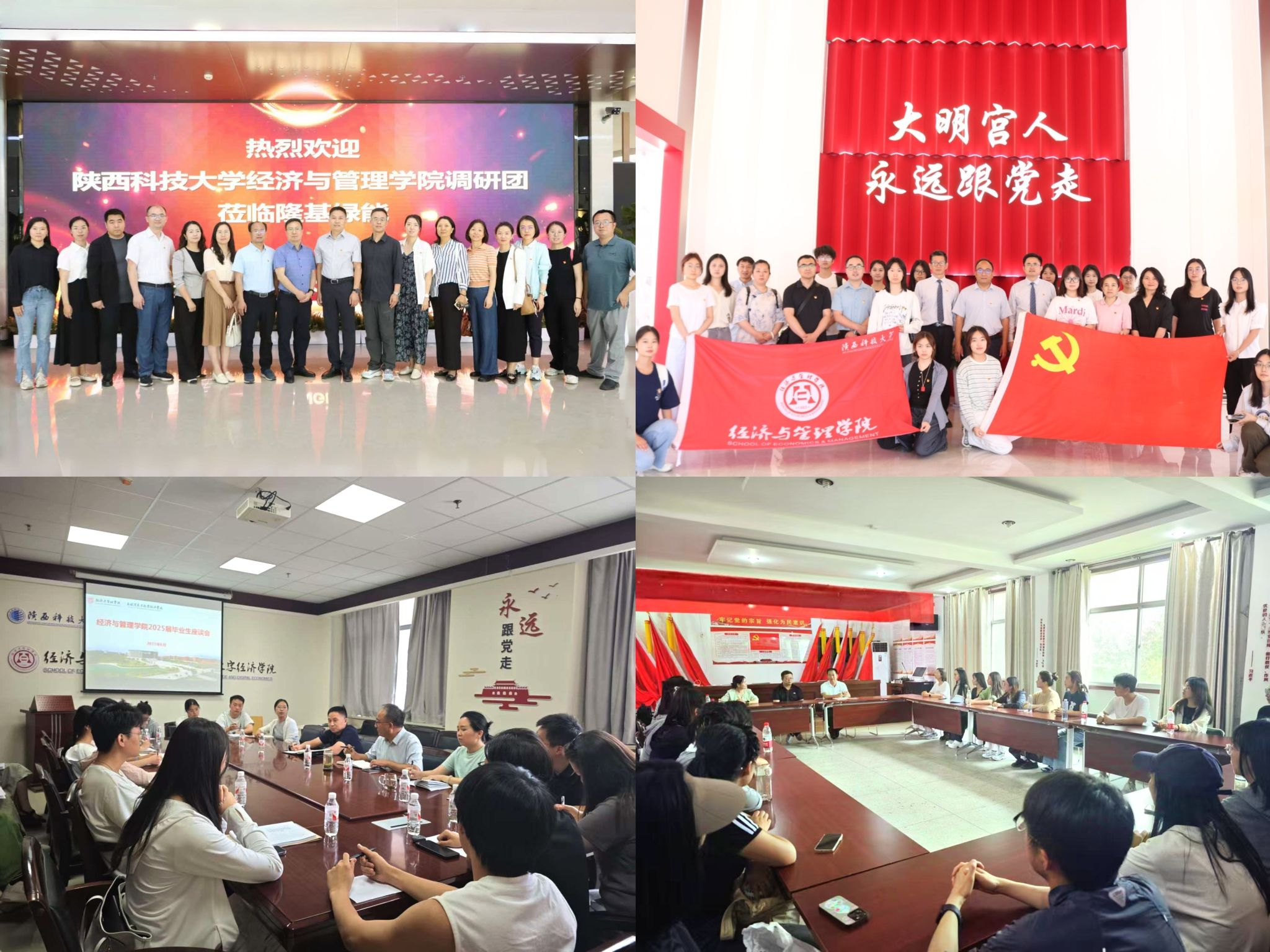 主題黨日踐使命,學(xué)做結(jié)合促發(fā)展。各支部立足實(shí)際扎實(shí)開(kāi)展“強(qiáng)黨性、踐初心、正作風(fēng)、促發(fā)展”主題黨日活動(dòng)。國(guó)貿(mào)師生黨支部聯(lián)合赴大明宮實(shí)業(yè)集團(tuán),以黨建引領(lǐng)校企協(xié)同育人;會(huì)計(jì)教工黨支部走進(jìn)隆基綠能,學(xué)習(xí)“黨建+”模式;辦公室、工管教工等支部以黨員過(guò)政治生日,讀書(shū)分享等形式深化學(xué)習(xí);研究生各黨支部到高陵區(qū)釣北村調(diào)研鄉(xiāng)村振興并參與勞動(dòng)實(shí)踐;本科生黨支部組織開(kāi)展讀書(shū)分享、主題演講及檔案封裝志愿服務(wù)。