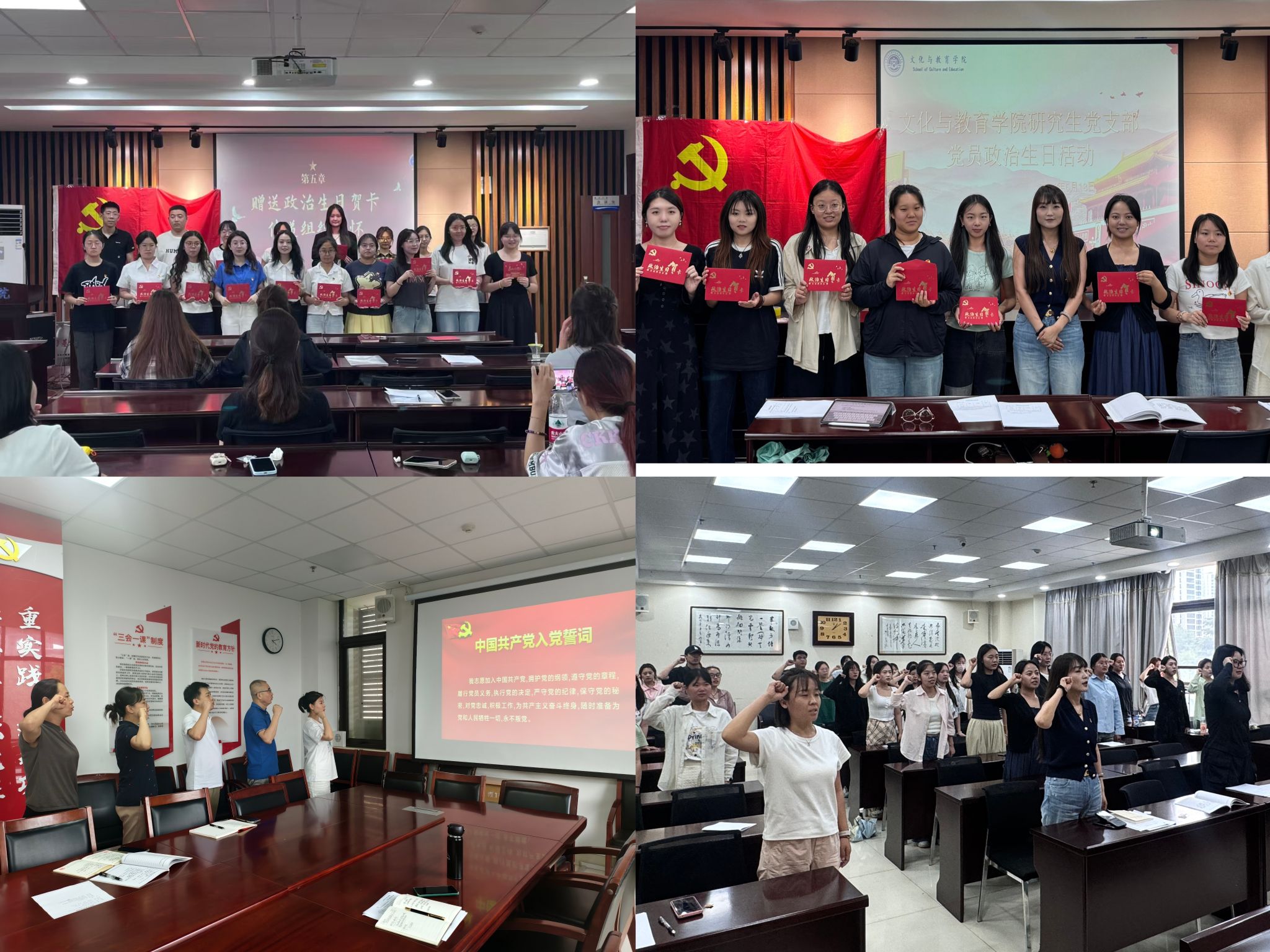 政治生日憶初心,奮進(jìn)征程守使命。6月以來(lái),學(xué)院各黨支部開(kāi)展“政治生日”主題黨日活動(dòng)。通過(guò)重溫入黨誓詞、撰寫(xiě)“入黨初心感悟”、發(fā)放“政治生日賀卡”等形式,引導(dǎo)全院師生黨員深刻銘記入黨初心、增強(qiáng)黨員身份意識(shí)。在莊嚴(yán)肅穆的儀式氛圍中,全體黨員更加堅(jiān)定了理想信念和責(zé)任擔(dān)當(dāng),表示將在新的學(xué)習(xí)生活和工作崗位上繼續(xù)發(fā)揮黨員先鋒模范作用,不斷追求卓越。
