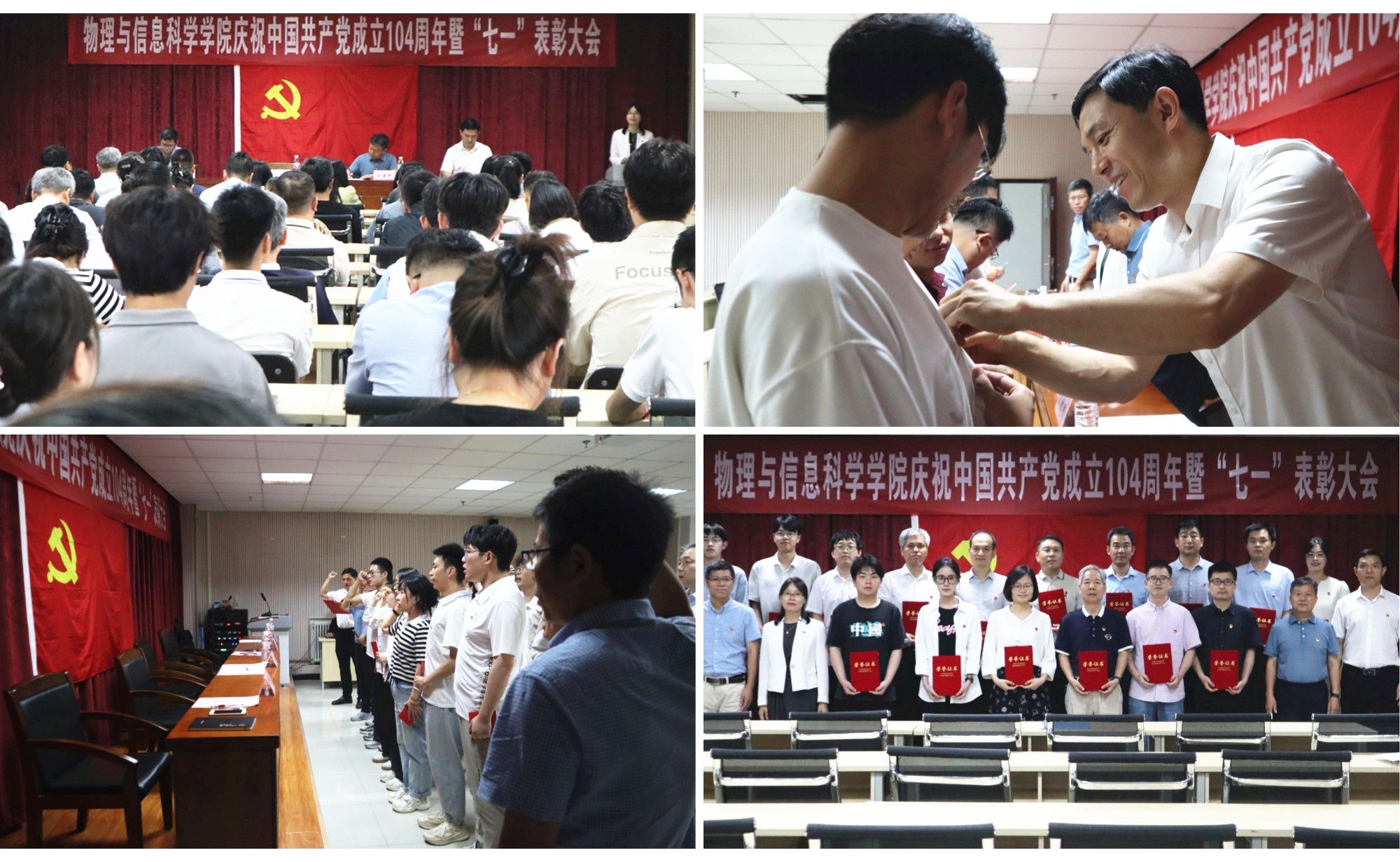 為慶祝中國共產(chǎn)黨成立104周年,表彰先進,樹立典型,物理學(xué)院黨委于6月30日舉行慶祝中國共產(chǎn)黨成立104周年暨“七一”表彰大會。學(xué)院黨委委員、全體黨員、入黨積極分子代表參加會議,會議由學(xué)院黨委副書記王曉明主持。