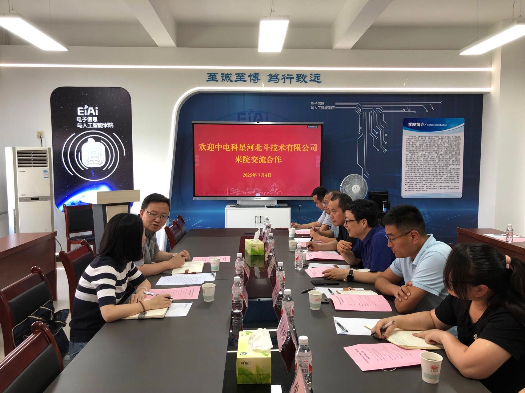 7月4日,中電科星河北斗技術(shù)有限公司副總經(jīng)理李健、行政主管高育瑩來電智學(xué)院開展交流座談并舉行了授牌儀式。電智學(xué)院院長馬令坤、院長助理任喜偉及各專業(yè)負責(zé)人出席座談交流,會議由任喜偉主持。