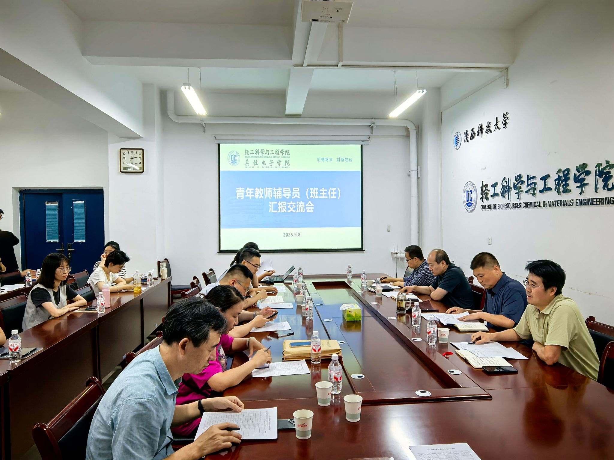 9月8日下午,輕工科學(xué)與工程學(xué)院(柔性電子學(xué)院)在218會議室舉行青年教師輔導(dǎo)員(班主任)工作匯報交流會。學(xué)院班子成員、各系主任、2025級至2023級青年教師輔導(dǎo)員(班主任)及輔導(dǎo)員代表參加會議。會議由學(xué)院黨委副書記張乾隆主持。