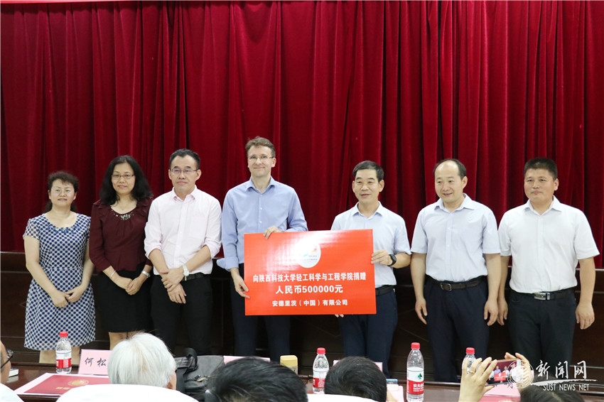 6月25日下午,輕工科學(xué)與工程學(xué)院在3號教學(xué)樓101教室舉行企業(yè)及校友捐贈助學(xué)簽約儀式暨杰出校友·企業(yè)家論壇活動,至此校慶之際,來自全國各地共計25家單位共捐贈350余萬元,用于輕工科學(xué)與工程學(xué)院教學(xué)、科研、學(xué)生獎學(xué)金等項(xiàng)目。輕工學(xué)院黨委書記李新平,院長弓太生,副院長張素風(fēng)、張輝、呂斌出席活動。會議由院黨委副書記陳李斌主持。