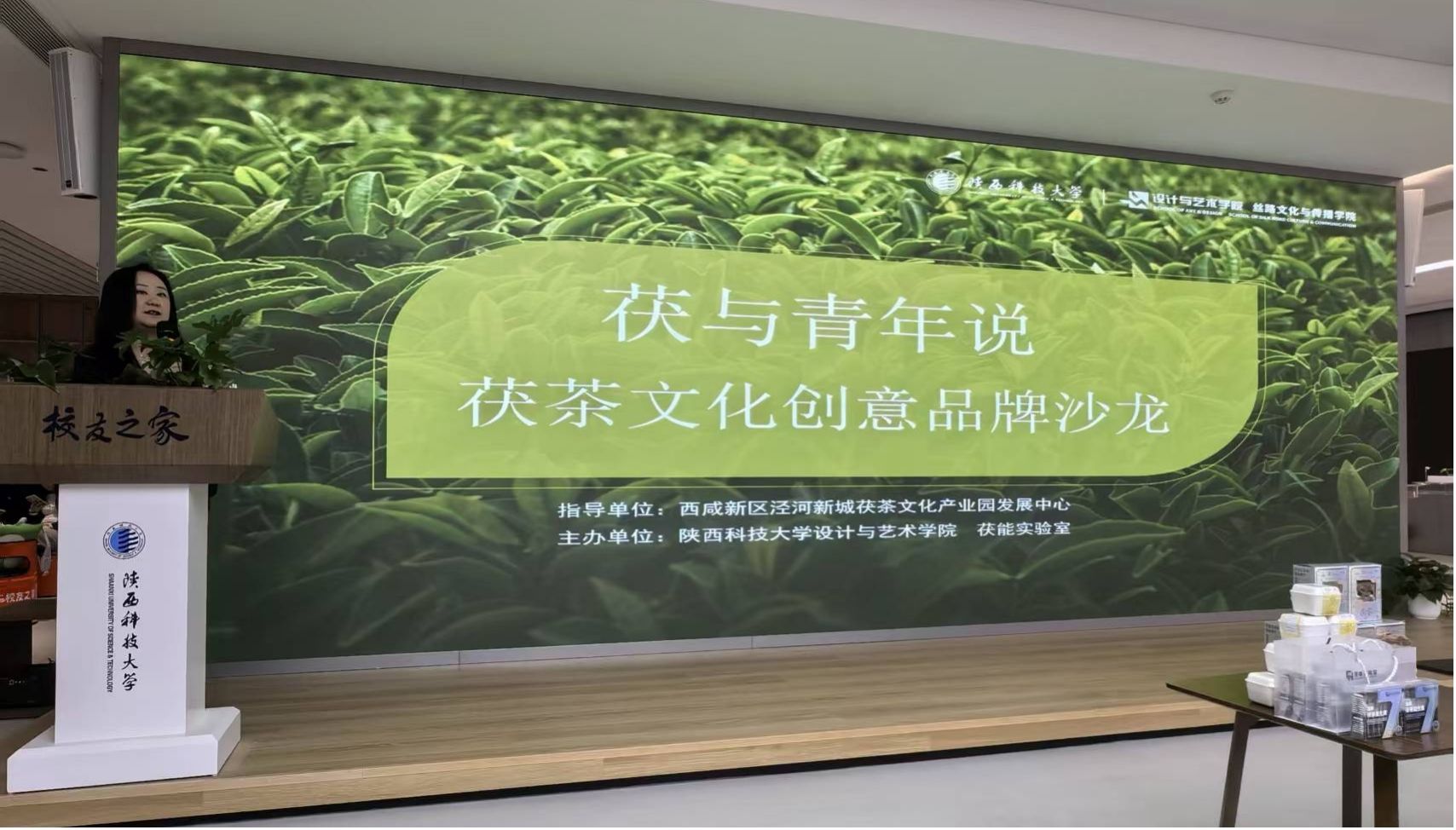 10月16日下午,“茯與青年說——茯茶文化創(chuàng)意品牌沙龍”在陜西科技大學(xué)校友之家舉行。出席本次活動的有西咸新區(qū)涇河新城茯茶文化產(chǎn)業(yè)園發(fā)展中心主任黨其雷、陜西冰峰飲品、陜西藝術(shù)精釀等知名品牌代表,設(shè)計(jì)與藝術(shù)學(xué)院副院長賀雪梅、副院長吉平以及視覺傳達(dá)設(shè)計(jì)專業(yè)師生。