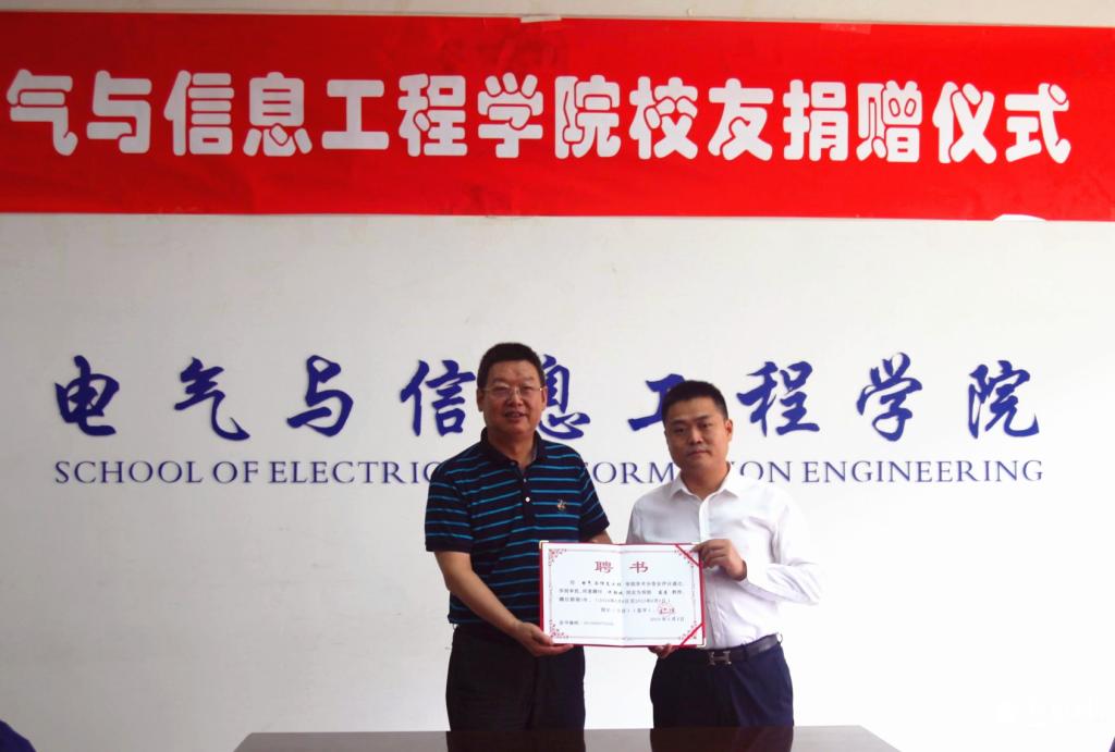 公司董事長許期斌系我校電信學(xué)院電子98級校友,為持續(xù)回饋母校的培養(yǎng),該公司本次在我校設(shè)立總額共25萬人民幣的學(xué)生助學(xué)金,該助學(xué)金第一期5萬元人民幣已于2018年7月4日全部到賬。湯偉、許江宏分別代表學(xué)院向許期斌頒發(fā)了捐贈證書、客座教授聘書。