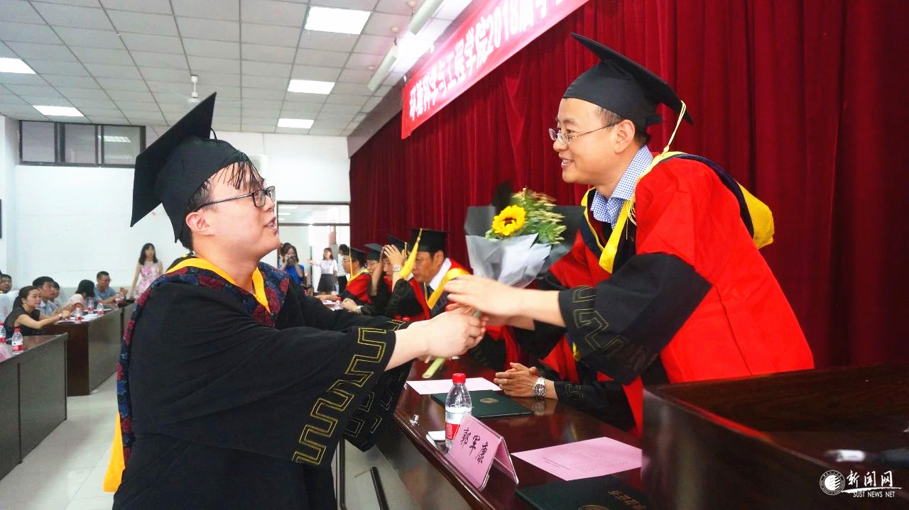 典禮寄語新征程。28日上午,學(xué)院在教三101隆重舉行2018屆畢業(yè)典禮暨學(xué)位授予儀式。院長馬宏瑞代表全體教師親切致辭,勉勵學(xué)生重塑理想,敢于拼搏,牢記科大“至誠至博”校訓(xùn),在各自的崗位上演繹精彩人生,一句“我愛你們!”道出了對畢業(yè)學(xué)子深切的感情。畢業(yè)生代表董金葉飽含深情表達(dá)了對母校的生日祝福和留戀感激,“聚是一團(tuán)火,散是滿天星,科大、環(huán)境將是我們一生的烙印”引起在場學(xué)生共鳴。學(xué)位授予儀式結(jié)束后,畢業(yè)生代表們向全體老師獻(xiàn)上鮮花表達(dá)感恩和祝福,全體齊聲高呼“老師辛苦了,科大再見,我們畢業(yè)了!”,將全場氣氛推向高潮。畢業(yè)典禮在全體師生合唱《再見》的溫暖歌聲中圓滿落幕。