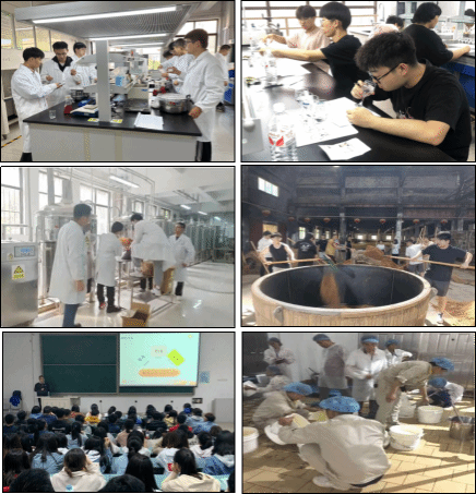 校企協(xié)同,共建產(chǎn)教融合育人體系。學(xué)院緊密?chē)@陜西省白酒等重點(diǎn)產(chǎn)業(yè)鏈發(fā)展需求,與西鳳酒業(yè)、釀酒工程研究院、陜西糧食質(zhì)量安全中心等單位深度合作,共建“食品科學(xué)與工程教改班”。以產(chǎn)業(yè)實(shí)際需求為導(dǎo)向,校企聯(lián)合構(gòu)建“通識(shí)+專(zhuān)業(yè)+拓展+融合”四層次課程體系,圍繞糧食安全檢測(cè)、白酒智能制造與品評(píng)、藥食同源資源開(kāi)發(fā)等方向合作開(kāi)發(fā)教學(xué)模塊。企業(yè)專(zhuān)家全程參與人才培養(yǎng)方案制定、課程建設(shè)與課堂教學(xué),推動(dòng)教學(xué)內(nèi)容與行業(yè)標(biāo)準(zhǔn)緊密銜接,實(shí)現(xiàn)人才培養(yǎng)與產(chǎn)業(yè)需求同頻共振。