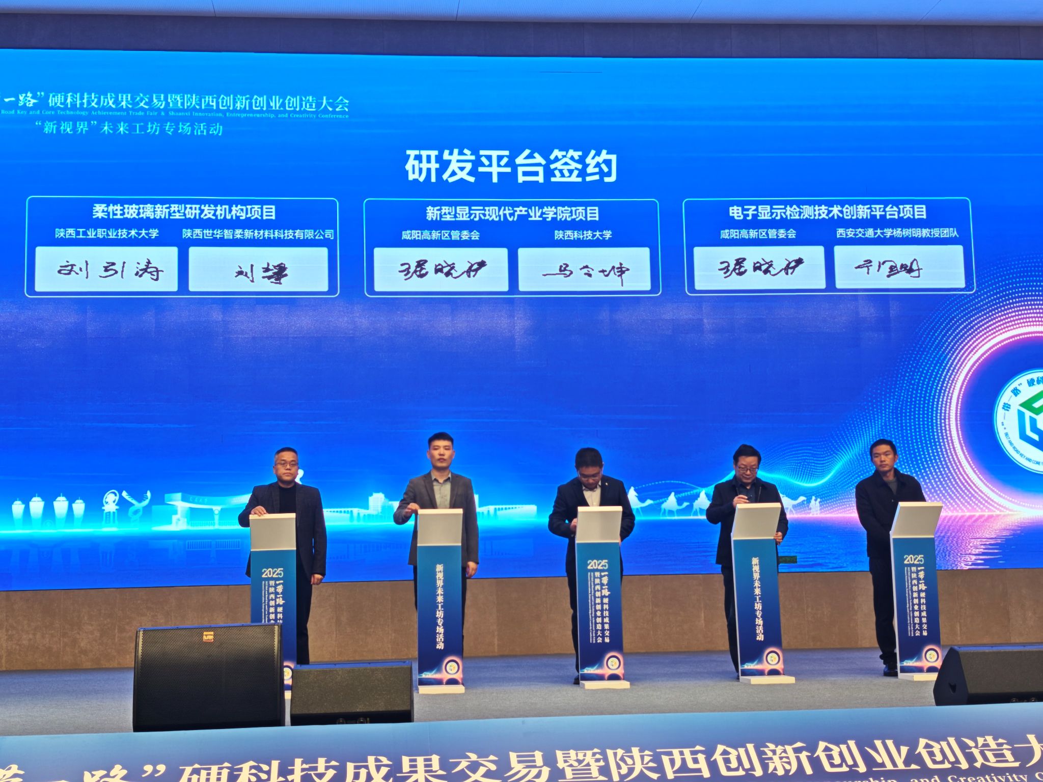 11月6日上午,電智學院院長馬令坤,光電系主任張方暉、黨支部書記王曉和部分教師代表受邀赴咸陽高新區(qū),參加2025“一帶一路”硬科技成果交易暨陜西創(chuàng)新創(chuàng)業(yè)創(chuàng)造大會“新視界”未來工坊專場活動?;顒蝇F(xiàn)場,電智學院與咸陽高新區(qū)管委會正式簽署戰(zhàn)略合作協(xié)議,推動新型顯示現(xiàn)代產(chǎn)業(yè)學院落地咸陽,標志著電智學院服務地方產(chǎn)業(yè)發(fā)展進入深度融合新階段。