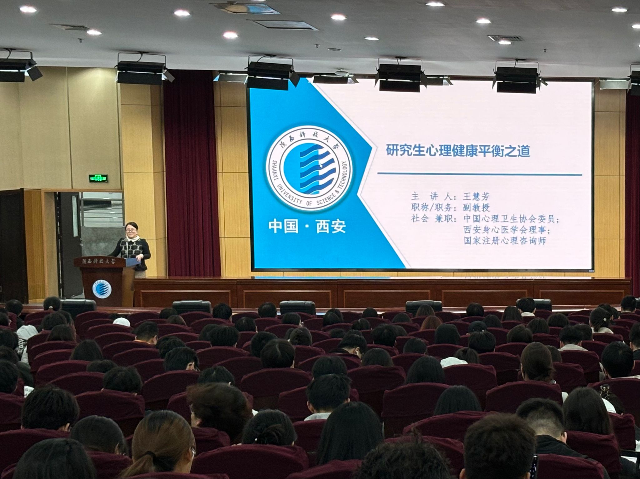 11月11日晚,陜西科技大學研究生新生思政大課第三講在圖書館學術(shù)報告廳順利舉行。本次講座以“研究生心理健康平衡之道”為題,特邀學生心理健康教育與咨詢中心主任、副教授、國家注冊心理師王慧芳老師擔任主講,各學院研究生輔導(dǎo)員及2025級研究生新生代表參與學習。