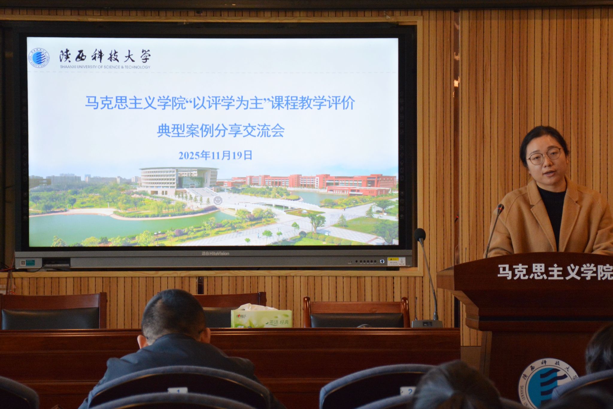 為深入落實(shí)“以評學(xué)為主”的教學(xué)質(zhì)量評價(jià)體系改革,11月19日上午,馬克思主義學(xué)院在人文樓1014報(bào)告廳開展“以評學(xué)為主”的課程教學(xué)評價(jià)典型案例經(jīng)驗(yàn)分享會(huì)。本次交流會(huì)由我院獲得校級(jí)“以評學(xué)為主”教學(xué)評價(jià)典型案例獎(jiǎng)項(xiàng)的郭丹老師進(jìn)行匯報(bào)分享,學(xué)院全體教師參加。