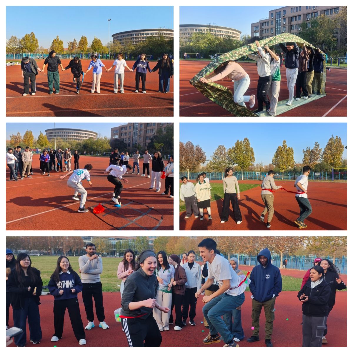 為豐富中外學(xué)生的課余生活,促進(jìn)中外學(xué)生文化交流,11月21日,國(guó)際教育學(xué)院在風(fēng)雨操場(chǎng)舉行了中外學(xué)生趣味運(yùn)動(dòng)會(huì)。