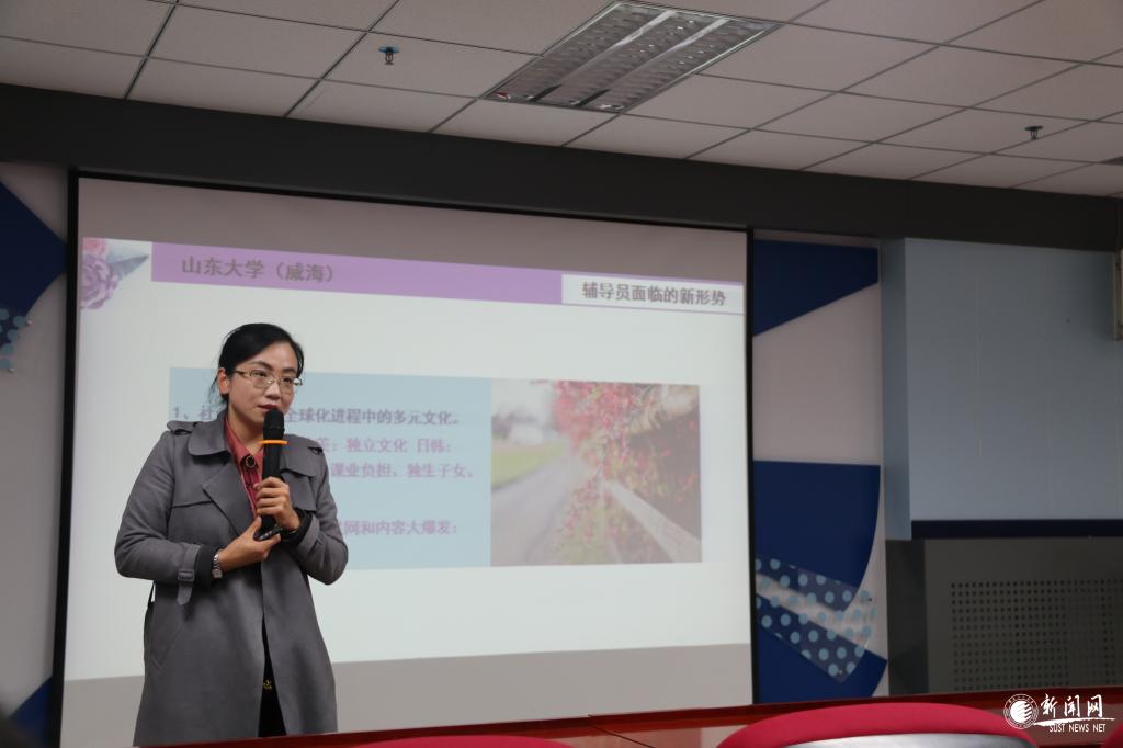 10月15日下午,第九屆全國高校輔導(dǎo)員年度人物、山東大學(xué)威海分校海洋學(xué)院黨委副書記范蕊副教授應(yīng)邀來我校作了題為《新形勢下輔導(dǎo)員如何開展思想政治教育》的報告,全體學(xué)工系統(tǒng)人員參加了此次報告會,報告會由學(xué)工部副部長李萌主持。