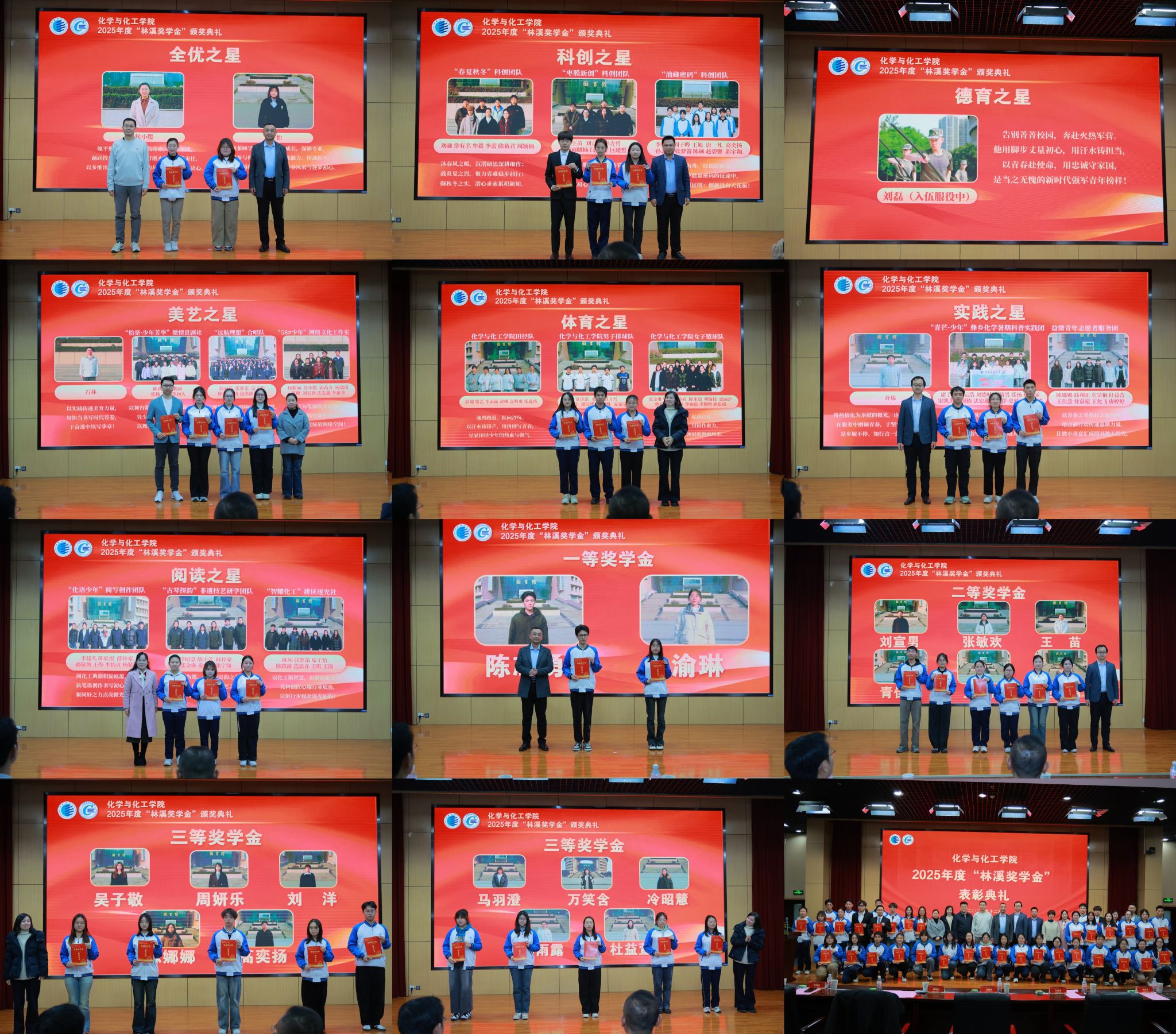 聚夢成“林”,生生不“溪”。12月14日晚,化工學院2025年度“林溪獎學金”頒獎儀式在圖書館報告廳舉行。獎學金設立者、學院教師李剛輝,學院班子成員,各系室教師代表及全體大一、大二年級學生共同參與。儀式由學院黨委副書記孫賓濤主持。