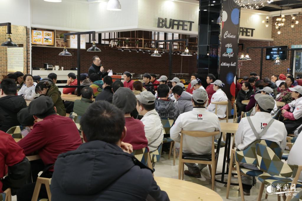 為進(jìn)一步加強(qiáng)我校各餐廳食品安全管控,12月28日,校醫(yī)院院長(zhǎng)霍俊為全校400多名餐飲工作人員進(jìn)行食堂傳染病防控知識(shí)的講解。講座由后勤服務(wù)集團(tuán)總經(jīng)理助理兼飲食服務(wù)中心主任馬玉清主持。