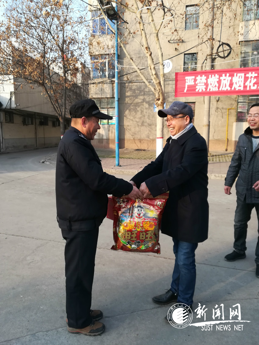 劉運與值班人員一一親切握手,向他們噓寒問暖,并送上了慰問品。他代表管委會向春節(jié)期間所有值班人員致以節(jié)日的祝福和問候,感謝大家長期以來對咸陽校區(qū)安全穩(wěn)定作出的貢獻,祝大家新春愉快、闔家歡樂。同時,他也希望各位值班人員認真堅守崗位,愛崗敬業(yè),確保寒假和春節(jié)期間校區(qū)的安全穩(wěn)定。