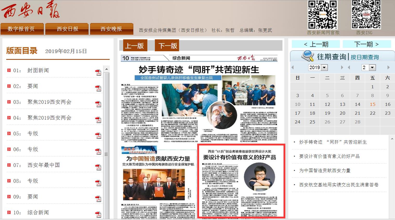 《西安日報》02月15日以《西安 “85后”創(chuàng)業(yè)者岐維佳屢獲世界設(shè)計大獎》為題,長篇報道我校2012屆畢業(yè)生、小喵科技聯(lián)合創(chuàng)始人岐維佳創(chuàng)業(yè)之路。全文轉(zhuǎn)載如下: