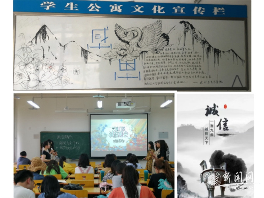 2017級、2018級各班通過開展“誠實守信”主題班會,畢業(yè)生通過舉辦誠信教育沙龍等形式,倡導(dǎo)契約精神,幫助學(xué)生樹立誠信觀念。環(huán)藝學(xué)生黨支部承辦“誠實守信”原創(chuàng)海報設(shè)計大賽,活動共收到23幅海報設(shè)計作品,累計網(wǎng)絡(luò)投票4828票,引發(fā)學(xué)生參與和討論熱情。學(xué)院在sust設(shè)藝青年官微和易班發(fā)布《知恩于心,感恩于行》主題網(wǎng)文,向全院受助學(xué)生發(fā)出倡議,鼓勵受助學(xué)生積極參與公益活動和社會實踐,用實際行動感恩社會、回饋母校。同時,學(xué)院組織受助學(xué)生于學(xué)生四公寓大廳繪制“誠信?感恩”公寓文化宣傳板報,引導(dǎo)廣大學(xué)生自立自強(qiáng)、感恩回饋,做資助政策的學(xué)習(xí)者和傳播者,做知恩感恩的踐行者。