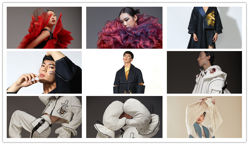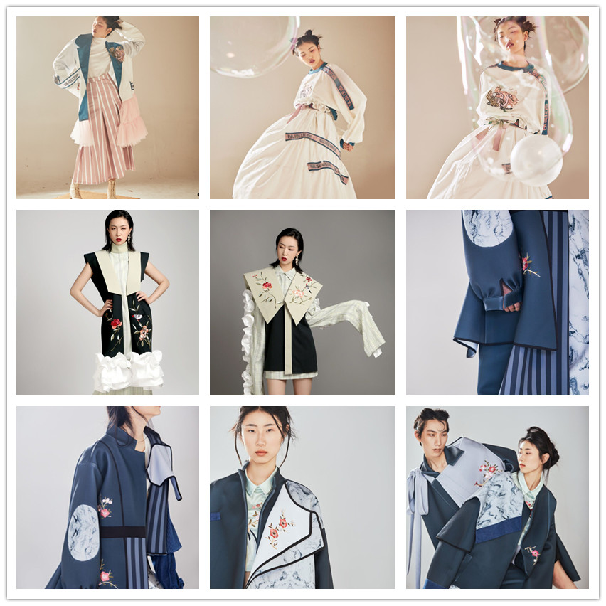 本次發(fā)布會的設(shè)計作品共23個系列,110余套作品。作品《柒》靈感來源于陜西刺繡紋樣鳳凰,主要是傳達(dá)出陜西刺繡的美好寓意,有吉祥、吉利、尊貴、博大,相傳魚的記憶只有七秒鐘,七秒之后便會重新?lián)碛行腋5挠洃?,此系列服裝也是想傳達(dá)一種新舊的變化;《秦華簌月》靈感來自于陜西刺繡滿月系列紋樣,選取寅虎與酉雞作為主要的刺繡圖案,寓意健康、強(qiáng)壯、勇敢、吉祥。白與黑干凈分明的色彩透露著純潔,美好的寓意?!赌繁鞠盗凶髌吠ㄟ^將陜西刺繡的圖案和技法與服裝設(shè)計中的創(chuàng)意面料及廓形設(shè)計相結(jié)合。融合手工刺繡,使面料工藝與陜西刺繡的匠人精神相結(jié)合,將“傳統(tǒng)與現(xiàn)代” “傳承與創(chuàng)新”完美呼應(yīng),研發(fā)一系列的創(chuàng)意服裝,達(dá)到“陜西刺繡,一帶一路”的主題思想。