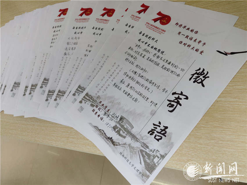 寄語青春,筑夢芳華。學(xué)院開展畢業(yè)生“微寄語”、“給十年后的自己”寄語和“科大,我想對您說”畢業(yè)感言征集等活動,畢業(yè)生們用文字,表達(dá)著對學(xué)生時代的總結(jié),對母校的感恩,對“至誠至博”的深刻理解和對十年后自己的期許和憧憬。