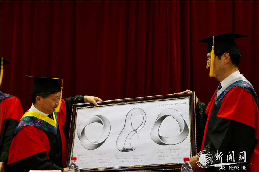 感恩科大,放飛夢想。學(xué)院為每一位畢業(yè)生饋贈一枚印有?;盏瓤拼笤睾妥约盒彰膶偎в≌?,定制一款紀(jì)念手提袋,精心制作畢業(yè)視頻,學(xué)院領(lǐng)導(dǎo)、專業(yè)教師等畢業(yè)前深入宿舍慰問即將遠(yuǎn)航的學(xué)子,這些貼心的舉措讓畢業(yè)生感受到學(xué)校和老師最真誠的關(guān)愛和殷切的希望。畢業(yè)典禮上,數(shù)學(xué)系、物理系、英語系學(xué)生為學(xué)院送上具有專業(yè)特色的專屬禮物,“莫比烏斯環(huán)”、“克萊因瓶”、“永動桿”、“磁懸浮”、“科大拼圖”......別樣禮物別樣情,表達(dá)了畢業(yè)學(xué)子們對學(xué)校、老師培養(yǎng)之恩的誠摯感謝。