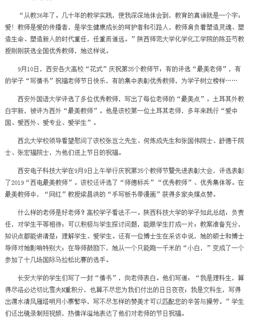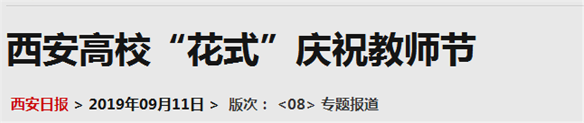 9月11日,西安日?qǐng)?bào)報(bào)道了我校慶祝教師節(jié)活動(dòng),全文轉(zhuǎn)載如下: