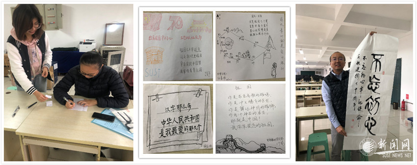 10月9日,教工綜合黨支部黨員結(jié)合自身成長的點(diǎn)滴,討論了國慶閱兵和聯(lián)歡活動的盛況,并拿出紙筆為祖國書寫“情詩”,每一副畫卷都透露著黨員同志對祖國熱烈而深沉的愛。通過書寫與分享討論,堅(jiān)定了支部黨員報(bào)效祖國、建設(shè)祖國的信念。