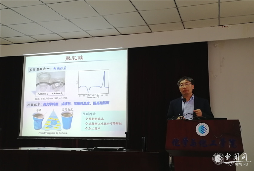 10月18日,我??萍继幖盎瘜W(xué)與化工學(xué)院邀請(qǐng)四川大學(xué)李忠明教授做客我校第一百一十一期“前沿科學(xué)報(bào)告”,作了題為“原位納纖化聚乳酸共混物研究”的學(xué)術(shù)報(bào)告。會(huì)議由化工學(xué)院院長助理邵亮主持,化工學(xué)院相關(guān)專業(yè)教師、研究生參加了此次學(xué)術(shù)報(bào)告。