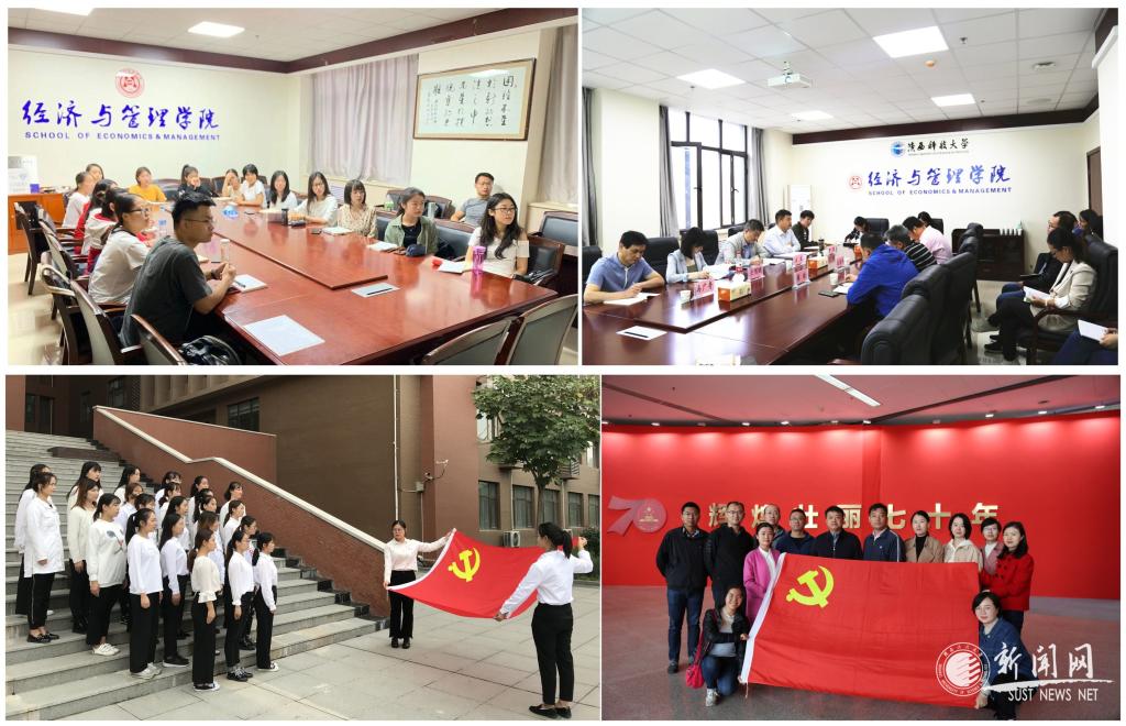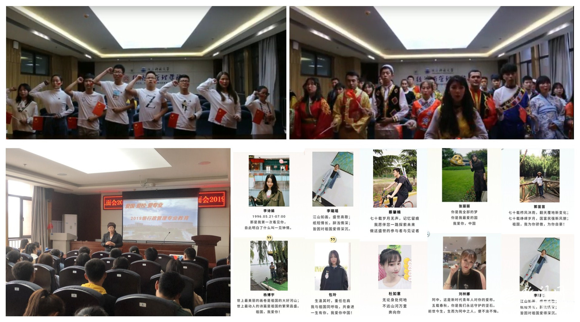 行政教工黨支部組織行政管理專業(yè)學(xué)生舉行了以“愛國?愛校?愛專業(yè)”為主題的教育活動(dòng),教工黨員以專業(yè)為背景,結(jié)合新中國70年的發(fā)展史和我?!叭齽?chuàng)兩遷”的歷史,引導(dǎo)學(xué)生以高標(biāo)準(zhǔn)的專業(yè)素養(yǎng)為核心競(jìng)爭(zhēng)力,自覺把愛國、愛校信仰落實(shí)為具體行動(dòng)。營(yíng)銷學(xué)生黨支部開展“歌聲禮贊祖國”主題黨日活動(dòng),黨員與2019級(jí)預(yù)科學(xué)生一同唱響《愛我中華》,動(dòng)聽的歌聲充分展示出學(xué)生黨員和少數(shù)民族學(xué)生的精神風(fēng)貌,更唱響了中華兒女一家親的主旋律。行政學(xué)生黨支部開展“三行情詩,向祖國表白”主題黨日活動(dòng),每位黨員用簡(jiǎn)短的文字、真摯的情感表達(dá)自己對(duì)祖國母親的熱愛。營(yíng)銷教工黨支部、辦公室黨支部等赴曲江國際會(huì)展中心參觀“輝煌壯麗七十年?追趕超越再出發(fā)——陜西省慶祝新中國成立70周年成就展”,黨員們認(rèn)真聆聽講解、積極參與互動(dòng),在展廳的黨旗面前重溫入黨誓詞,并在“祖國,我想對(duì)你說”的展區(qū)旁寫下自己對(duì)祖國的美好祝福。