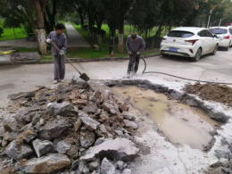 十三公寓跑水搶修、七公寓外暖氣跑水點(diǎn)管道焊接機(jī)電學(xué)院樓下管道維修、 十三公寓跑水搶修