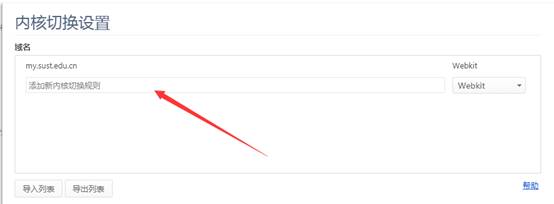 3.在內(nèi)核切換按鈕的彈出頁面添加新規(guī)則處,輸入my.sust.edu.cn敲回車即可。