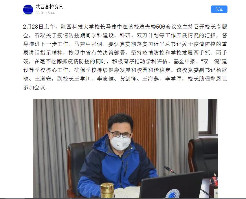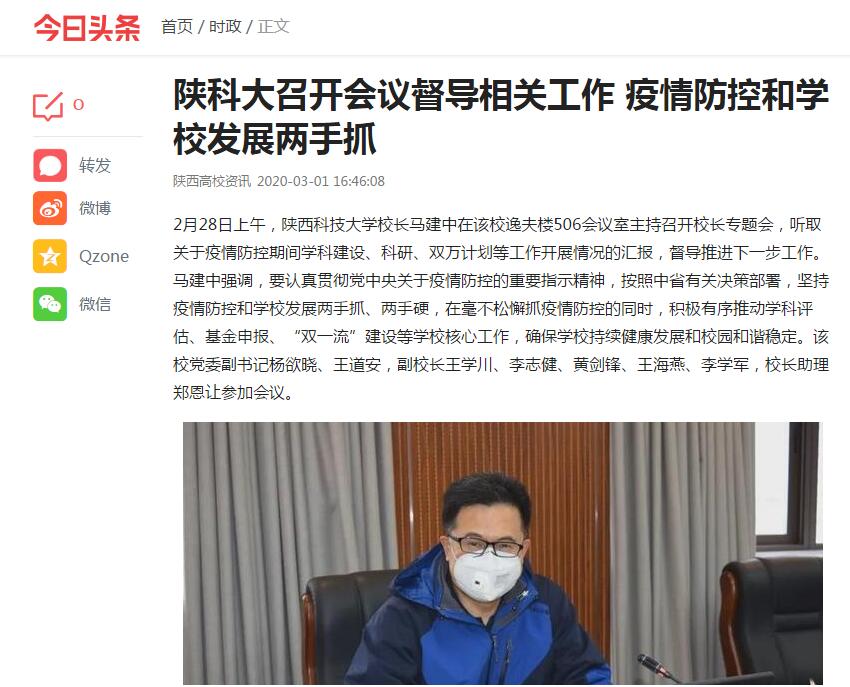 今日頭條APP:陜科大召開會(huì)議督導(dǎo)相關(guān)工作 疫情防控和學(xué)校發(fā)展兩手抓