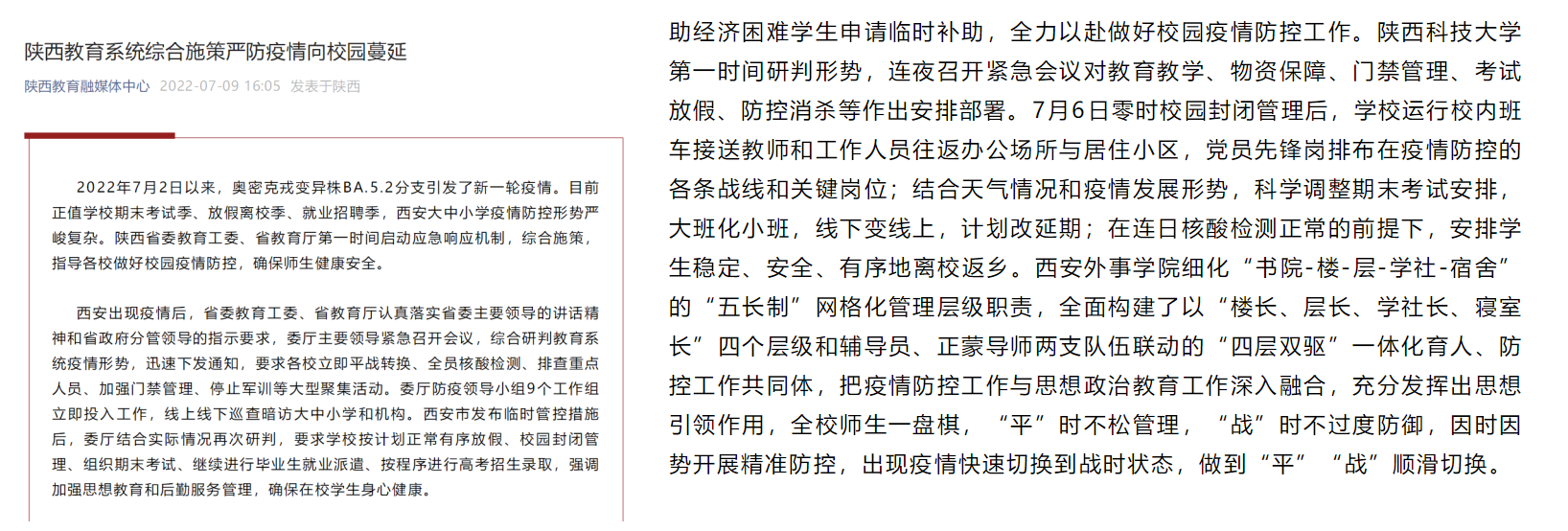 陜西教育融媒體中心:陜西教育系統(tǒng)綜合施策嚴(yán)防疫情向校園蔓延