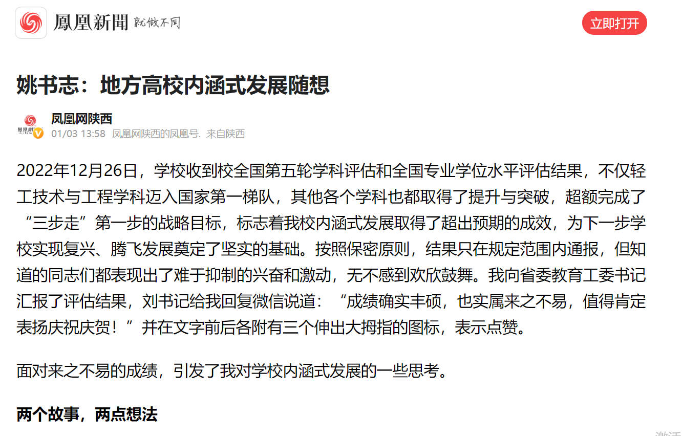 鳳凰新聞:姚書(shū)志:地方高校內(nèi)涵式發(fā)展隨想
