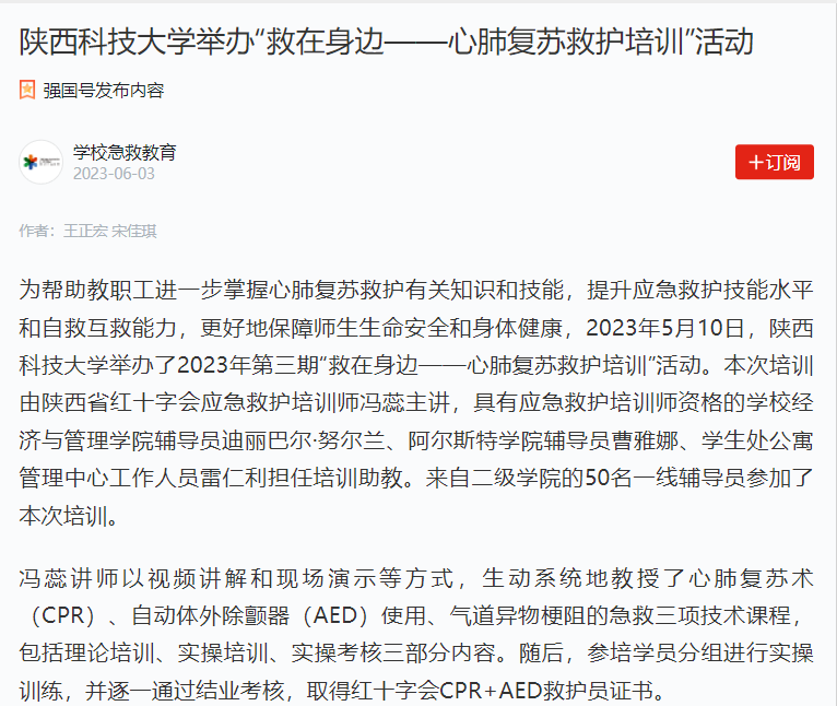 學(xué)習(xí)強(qiáng)國(guó):陜西科技大學(xué)舉辦“救在身邊——心肺復(fù)蘇救護(hù)培訓(xùn)”活動(dòng)