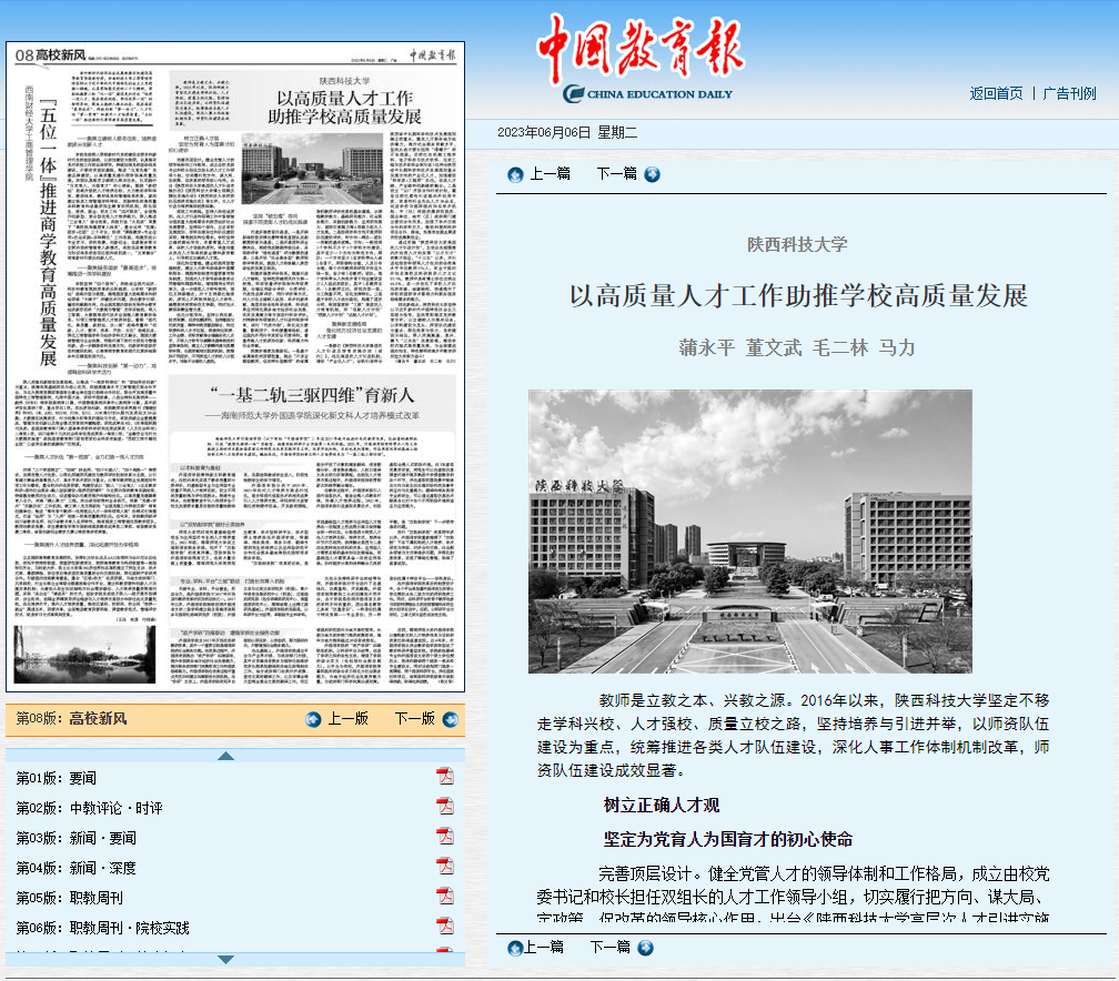 《中國教育報》:陜西科技大學(xué)以高質(zhì)量人才工作助推學(xué)校高質(zhì)量發(fā)展