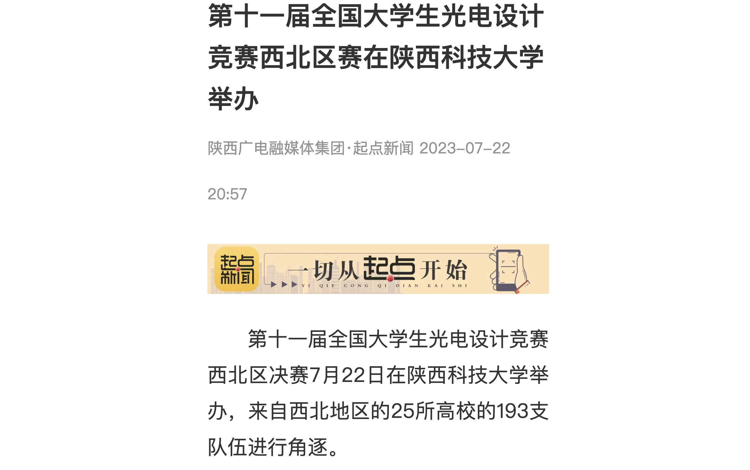 近日,起點新聞、群眾新聞、原點新聞、白鹿視頻等媒體報道第十一屆全國大學生光電設(shè)計競賽西北區(qū)賽在我校召開。