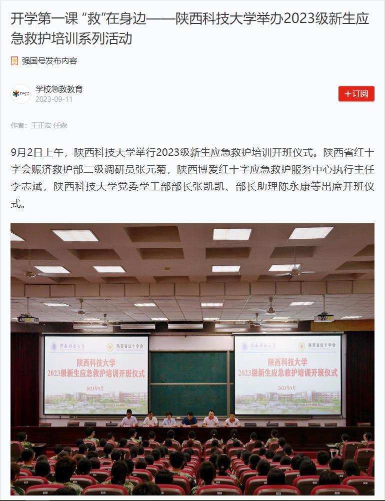學(xué)習(xí)強(qiáng)國APP:開學(xué)第一課 “救”在身邊——陜西科技大學(xué)舉辦2023級新生應(yīng)急救護(hù)培訓(xùn)系列活動